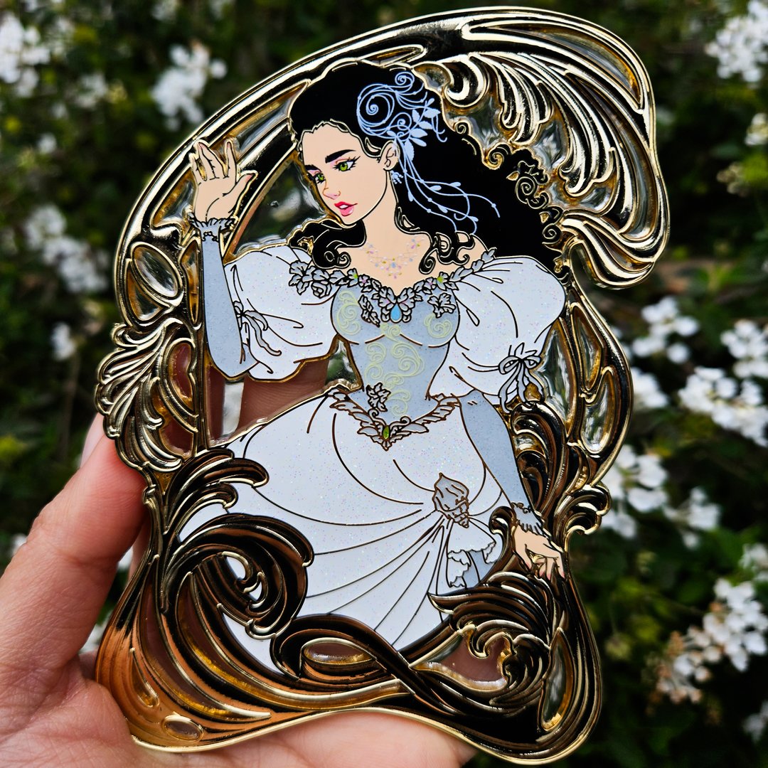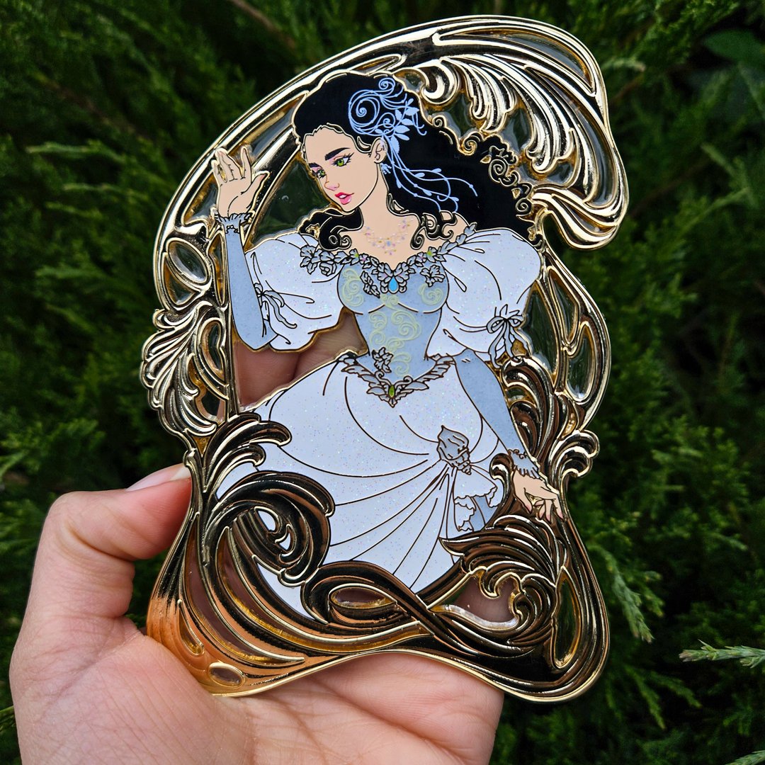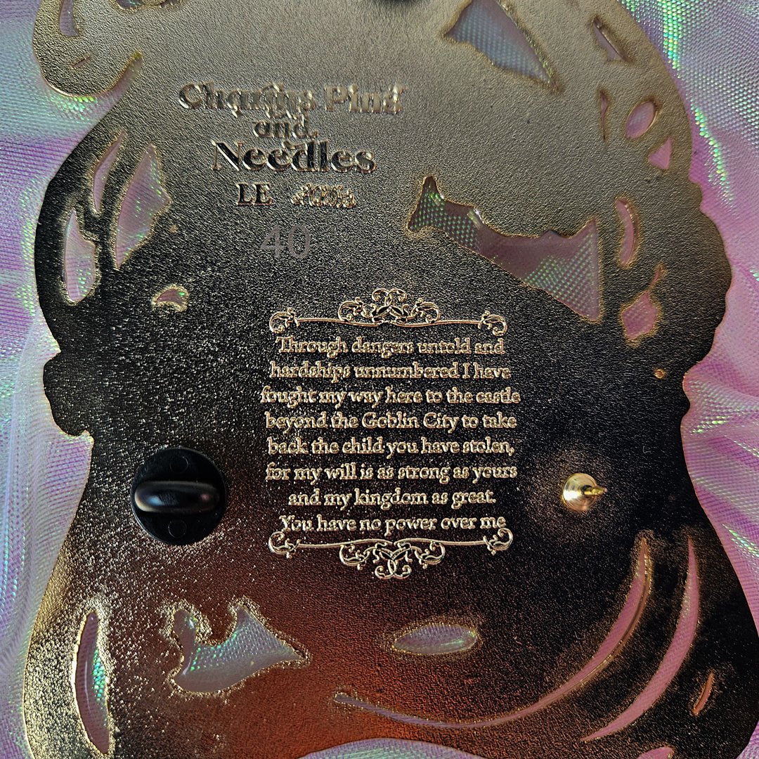 "Through hardships untold and dangers unnumbered..." Fall deep into the labyrinth with this one-of-a-kind fan-inspired enamel pin. Our design features a customized back stamp, detailed screen printing effects, glitter accents, and a delicate stain-glass-effect frame. This design stands at five inches (12.7cm) tall and is a Limited Edition of 40 units.