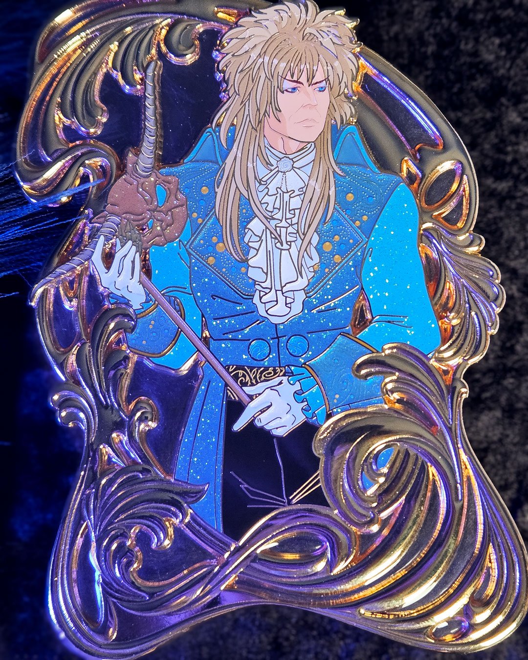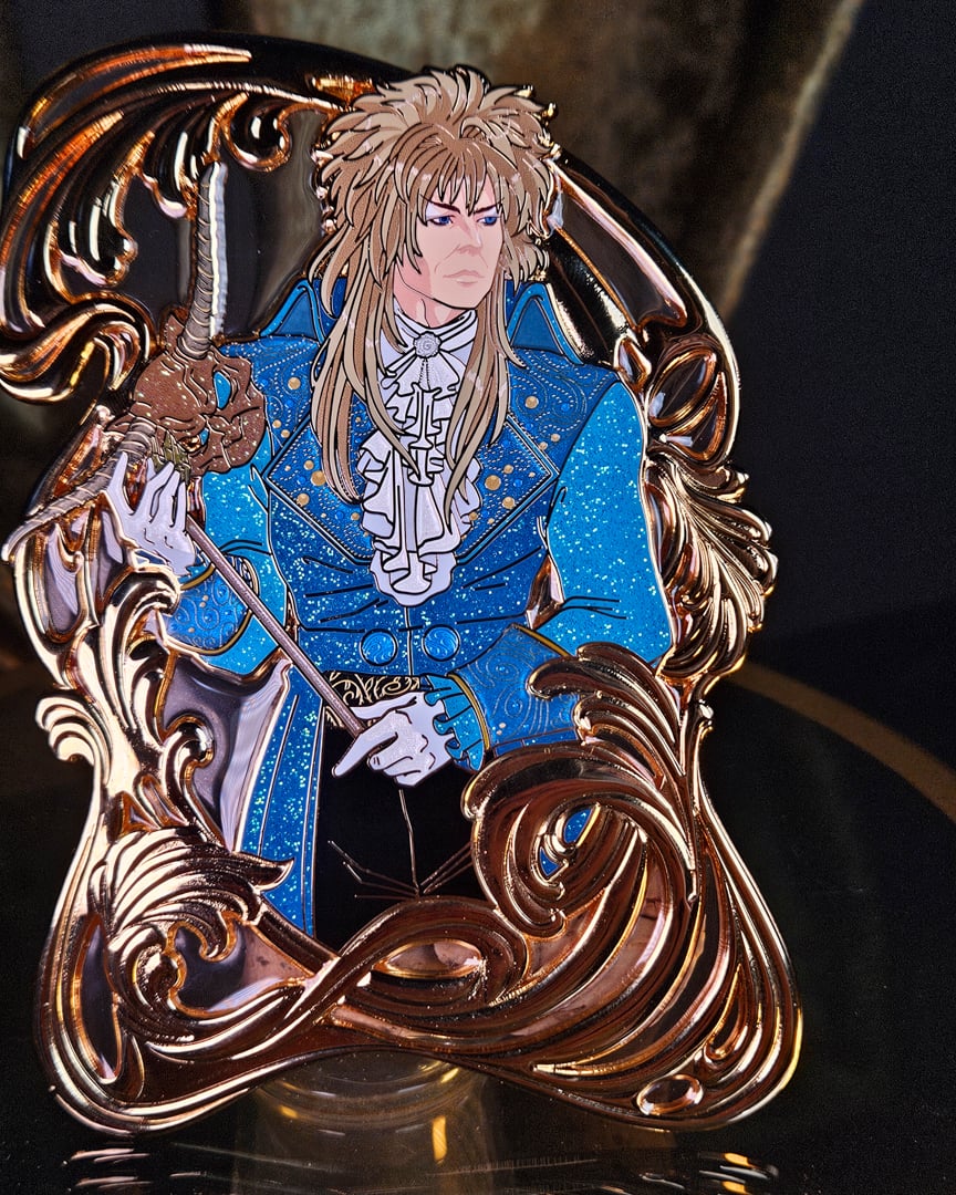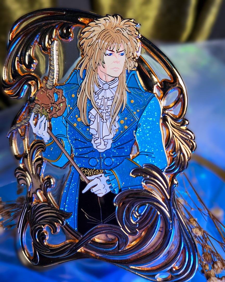 "I ask for so little..." Fall deep into the labyrinth with this one-of-a-kind fan-inspired enamel pin. Our design features a customized back stamp, detailed screen printing effects, glitter accents, and a delicate stain-glass-effect frame. This design stands at five inches (12.7cm) tall and is a Limited Edition of 40 units.